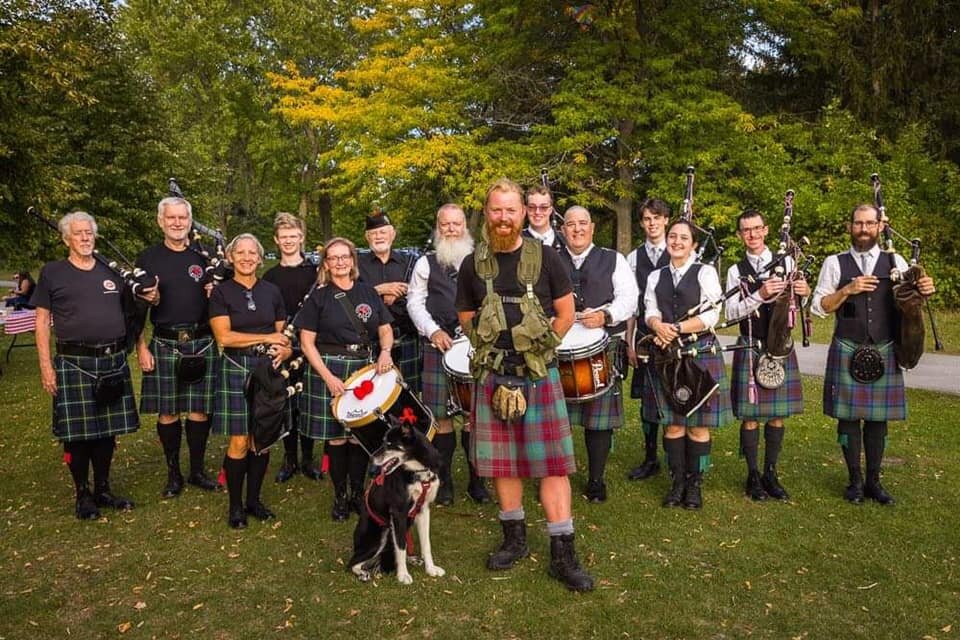 Your SSO was very excited to welcome Michael and Luna to the nation’s capital on September 20th with a Picnic Gathering at Andrew Haydon Park. Michael’s wee brother Jamie had just joined him from Scotland a few days before, here to support his brother on his walk from Ottawa to Montréal. Many members of the Ottawa Caledonian Pipes and Drums, the Sons of Scotland Pipe Band and fiddlers from Cape Breton Session were joined by approximately 50 fans and SSO members to offer a warm Scottish welcome to Ottawa to the travelers. In true Scottish style, a mini-massed band led Michael into the park, welcome remarks were delivered by Heather Theoret, Vice Chair, SSO, his Tour Manager, Wayne Chisholm, described his inspiration to help Michael on his cross-Canada dream, and Michael shared his vision.