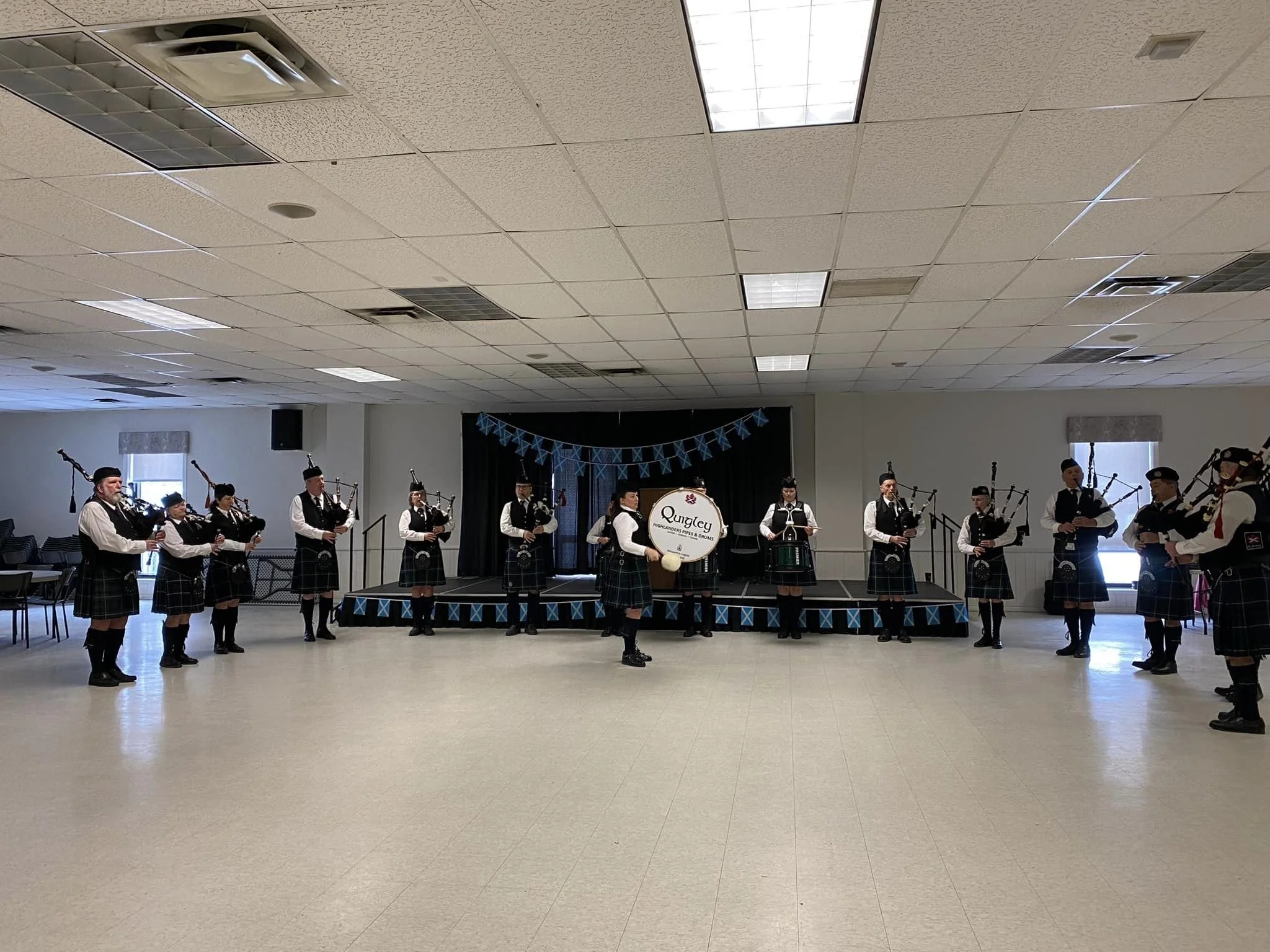 Inside, at the ceilidh help upstairs, music was provided by the Quigley Highlander Pipes and Drums.