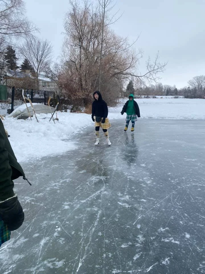 You don’t have to go to an organized community event to be a kilt skater. In 2021, when the COVID protocols prohibited large gatherings, we introduced the Home Edition: individuals, families and small groups sent us photos of their own, socially-distanced kilt skate. Thank you to the hundreds of skaters who took to the ice and used their creativity skating on ponds, community rinks, lakes, canals, creeks and even frozen roads. The Home Edition will remain a feature of the Great Canadian Kilt Skate for years to come.