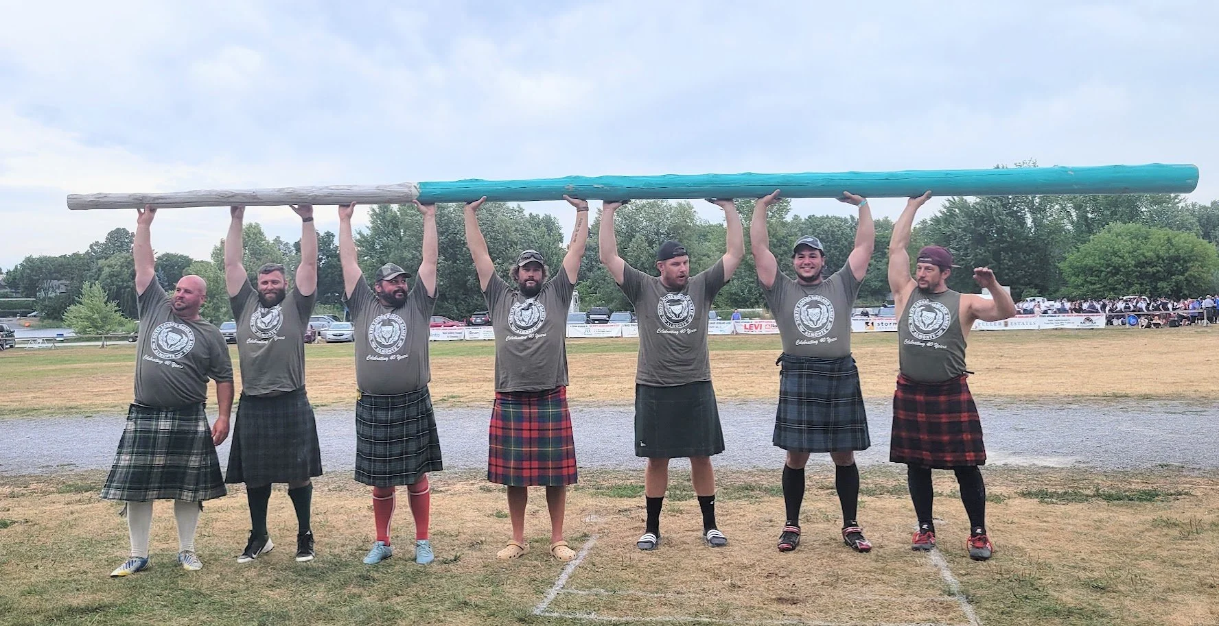 Holding the caber aloft. Photo courtesy of the NLHG